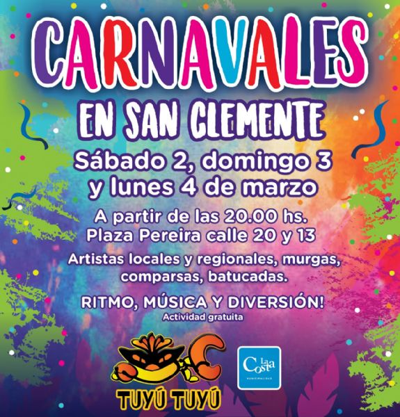 Este fin de semana se festejará el carnaval en el Partido de La Costa con tres noches de ritmo, música y mucha diversión en San Clemente del Tuyú.