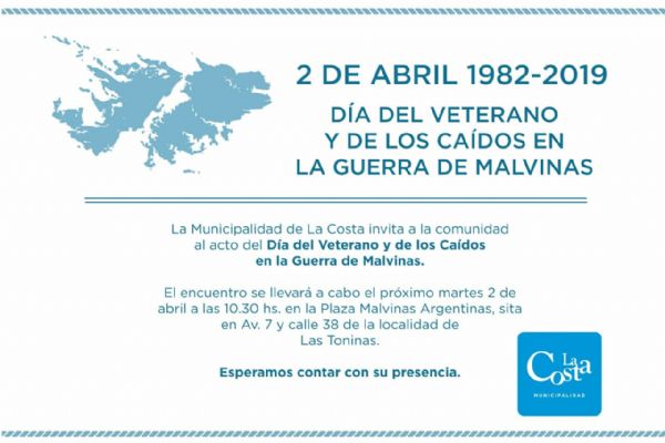 La Municipalidad de La Costa invita a la comunidad a participar del acto conmemorativo por el Día del Veterano y de los Caídos en la Guerra de Malvinas.