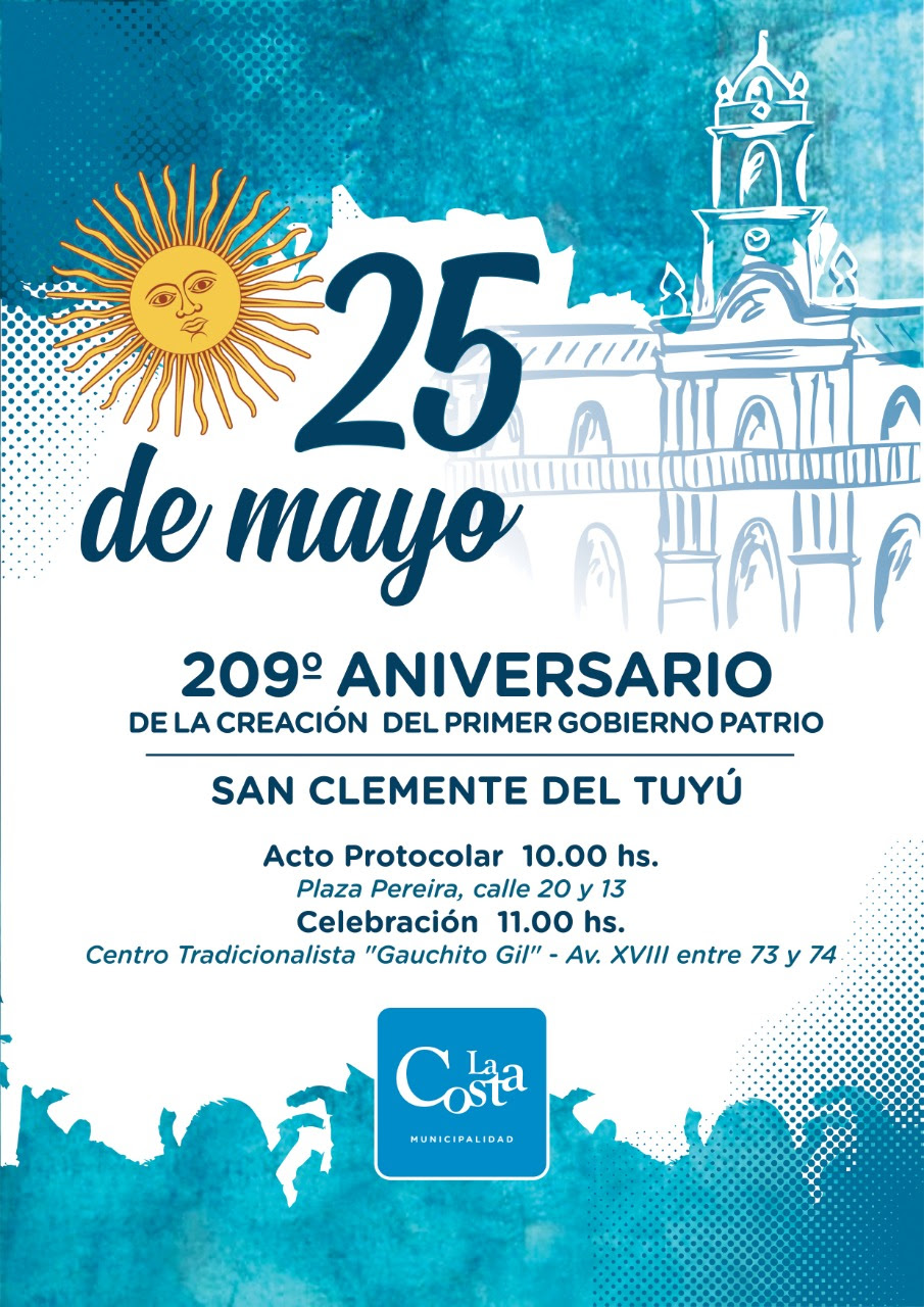 La Municipalidad de La Costa invita a toda la comunidad a celebrar el 209º aniversario de la creación del Primer Gobierno Patrio.