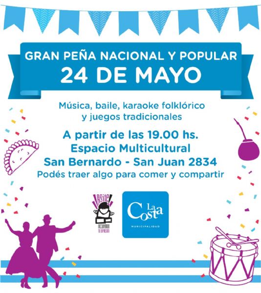 Una peña de música, baile y juegos se realizará este viernes 24 de Mayo en el Espacio Multicultural de San Bernardo, con la organización de la Municipalidad de La Costa.