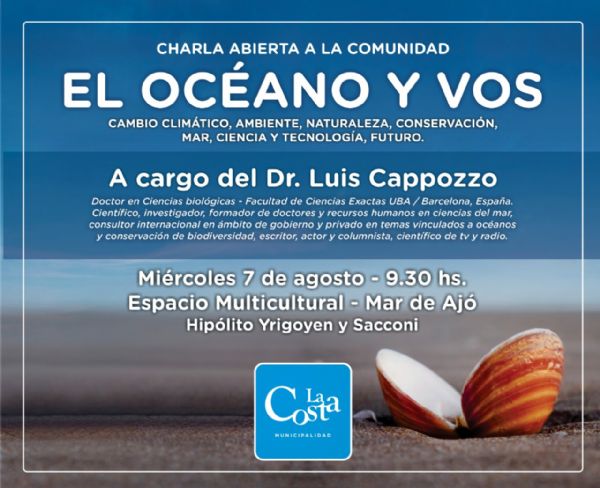 Este próximo miércoles 7 se presentará en el Espacio Multicultural de Mar de Ajó, desde las 9.00, el doctor en ciencias biológica Luis Cappozzo, para disertar sobre “El océano y vos”, que plantea las diferentes relaciones y responsabilidades para lograr un futuro sustentable.
