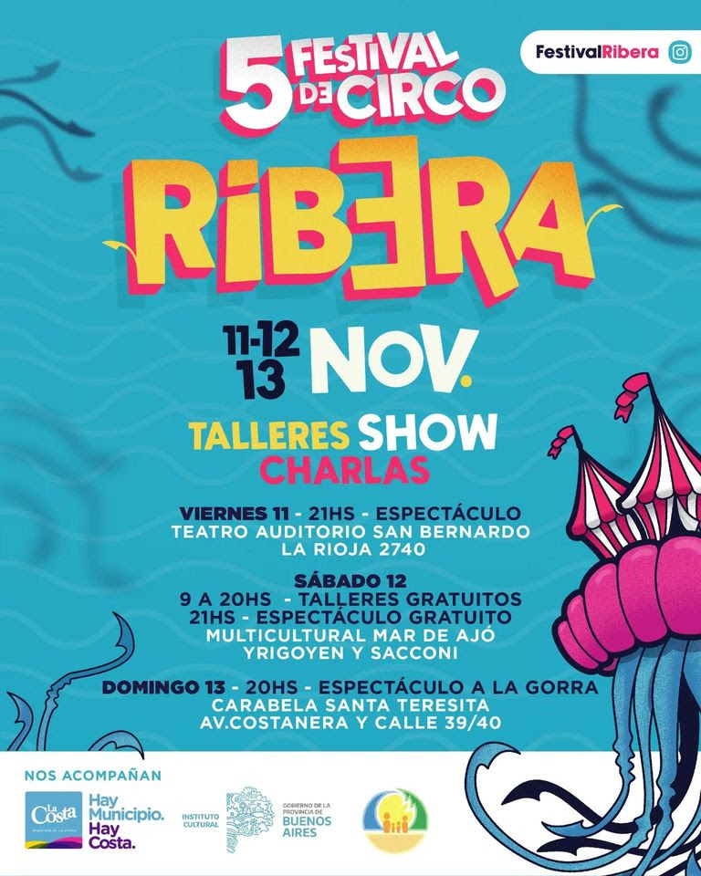 El Partido de La Costa será la sede de la 5ª edición del Festival de Circo Ribera que, durante tres días, ofrecerá talleres gratuitos abiertos a toda la comunidad y espectáculos con artistas de primer nivel.