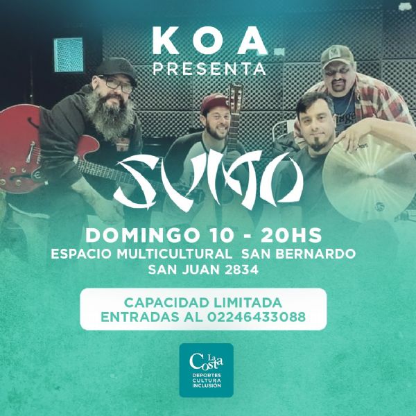 En esta oportunidad, este domingo 10, desde las 20.00, se presentará la banda local KOA, con un tributo a Sumo en el Espacio Multicultural de San Bernardo, ubicado en San Juan 2834.