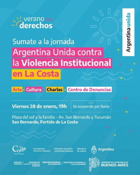 La Municipalidad de La Costa invita a participar de la jornada Argentina Unida contra la Violencia Institucional, que se desarrollará este viernes 28 en San Bernardo.