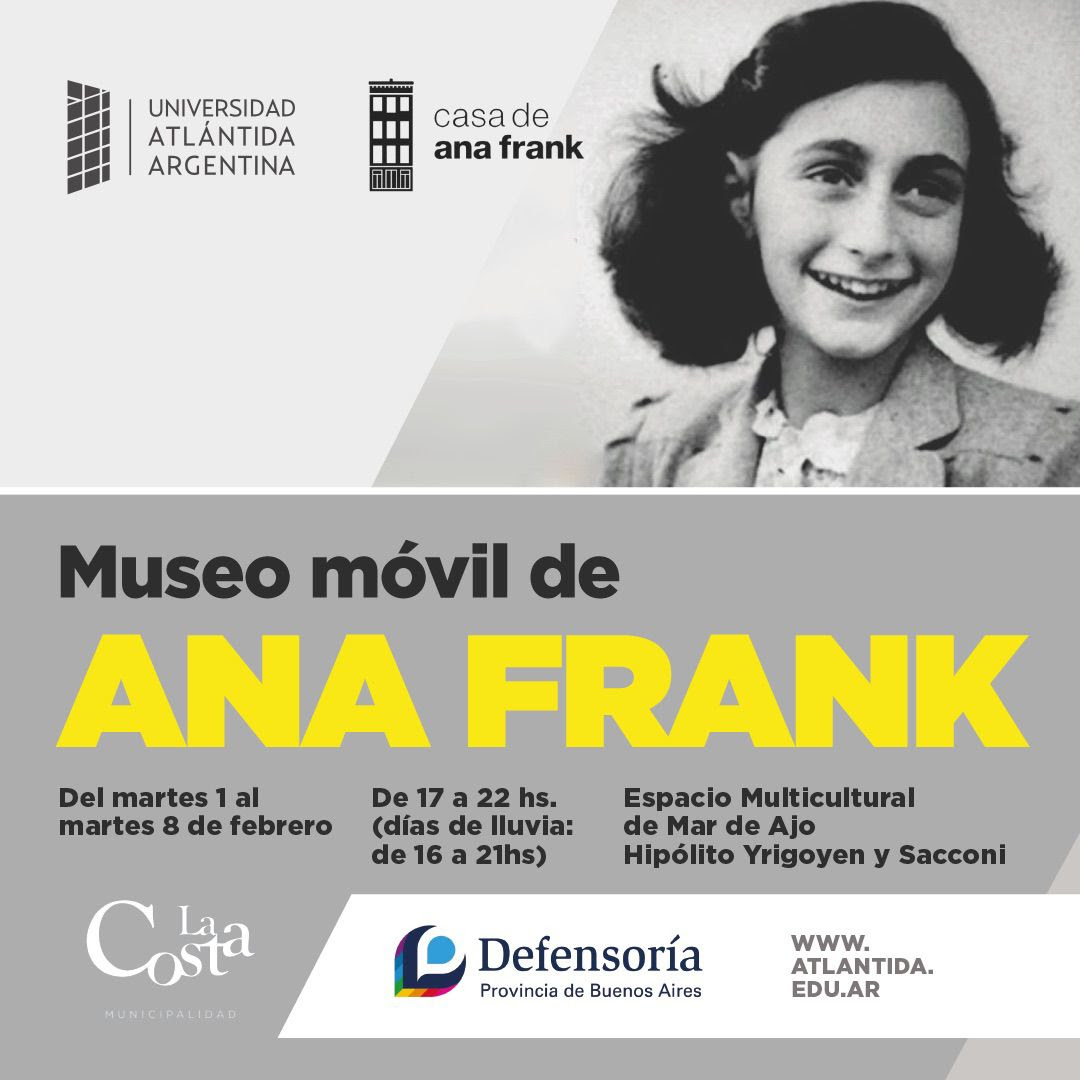 El museo móvil “De Ana Frank a nuestros días, jóvenes protagonistas” será inaugurado este miércoles 2, a las 18.00, en el Espacio Multicultural de Mar de Ajó, ubicado en Yrigoyen y Sacconi.