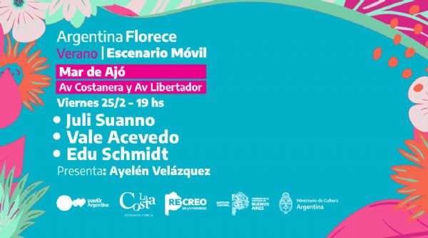 Este viernes 25 de febrero el Partido de La Costa será sede de la edición de verano del Festival Argentina Florece, que organiza el programa del ministerio de Cultura de la provincia de Buenos Aires en conjunto con la Municipalidad, con charlas, teatro y música en vivo para toda la familia.
