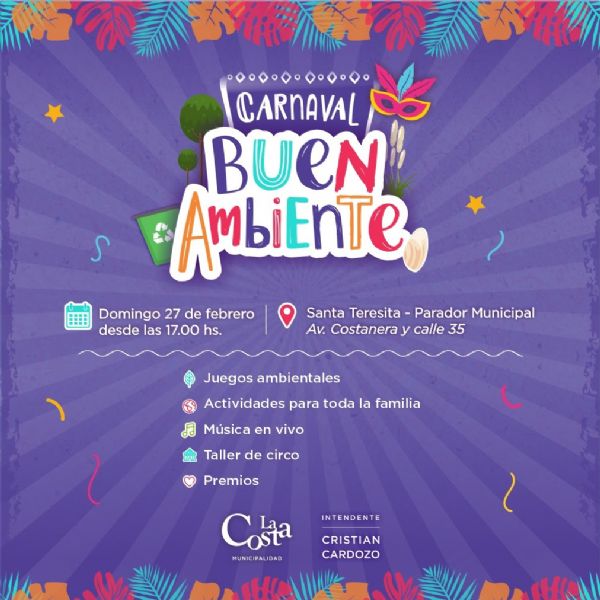Este domingo 27 se llevará adelante el “Carnaval en Buen Ambiente”, una actividad abierta para toda la comunidad organizada por la Municipalidad, en el marco de las políticas en educación ambiental que impulsa la gestión del intendente Cristian Cardozo.