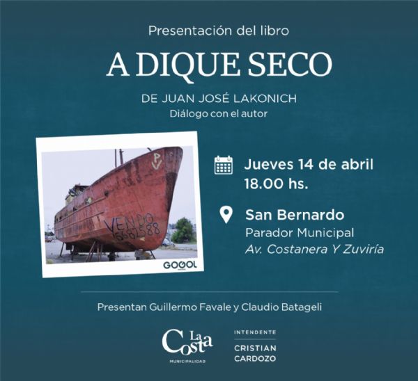 Este jueves 14, a las 18.00, se presentará el libro "A Dique Seco", en el Parador Municipal ubicado en Av. Costanera y Zuviria, en San Bernardo.