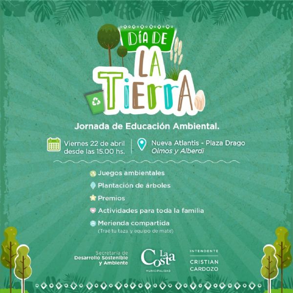 En el marco del Día de la Tierra que se celebra cada 22 de abril, se realizará una Jornada de Educación Ambiental en la plaza Drago de Nueva Atlantis, ubicada en Olmos y Alberdi, uno de los espacios públicos puestos en valor desde la gestión del intendente Cristian Cardozo.
