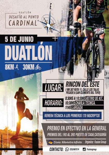 Este domingo 5 se disputará el primer Duatlón Cross en la localidad de San Clemente, bajo la organización de Fusión Group, con un recorrido de 8 kilómetros de pedestrismo y 30 kilómetros de ciclismo (mountain bike).
