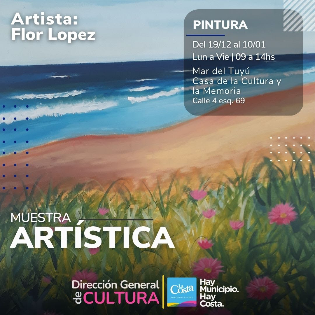 En Mar del Tuyú, se puede conocer el trabajo pictórico de Flor López. En este caso, la exhibición tiene lugar en la Casa de la Cultura y la Memoria que se encuentra en calle 4 esquina 69.