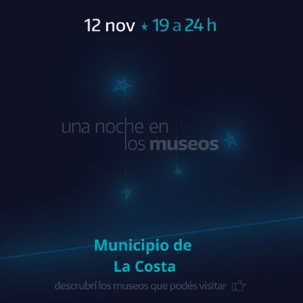 El 12 de noviembre nuestro distrito participará de la iniciativa “Una Noche en los Museos”, impulsada por el Instituto Cultural de la provincia de Buenos Aires y que se desarrollará desde las 19.00 hasta la medianoche en diversos espacios y museos del Partido de La Costa.