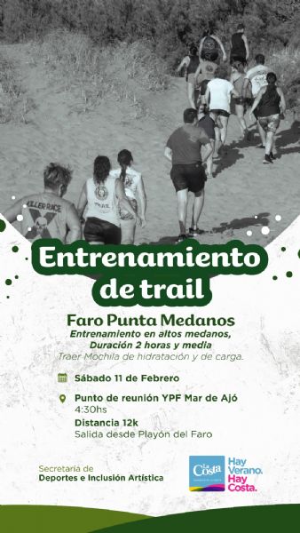 La Municipalidad de La Costa invita a vecinos, vecinas y visitantes a participar del entrenamiento de trail que se desarrollará en Punta Médanos.