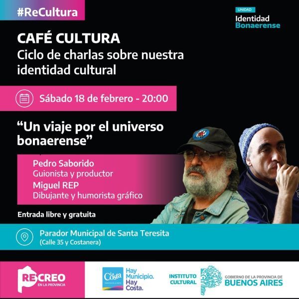 El ciclo Café Cultura, organizado por el Instituto Cultural de la Provincia de Buenos Aires, arribará al Partido de La Costa con la presencia del guionista y productor Pedro Saborido (que trabaja con el actor Diego Capusotto en sus proyectos televisivos), y el dibujante y humorista gráfico Rep (Miguel Repiso).