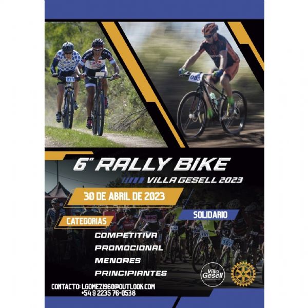Sexta carrera organizada por el Rotary Club de Villa Gesell, teniendo una sola finalidad, lo recaudado es siempre pensando en proyectos para con la comunidad, tanto en el área educativa, como la de salud. La carrera se realizará el día 30 de abril en Mar de las Pampas. Modalidad: Rally Bike en un circuito de 10 kms aproximadamente.