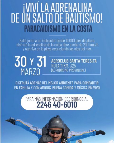Salta junto a un instructor desde 10.000 pies de altura, disfruta la adrenalina de la caída libre a más de 200 kms/h y aterriza en la playa acariciando las olas del mar.