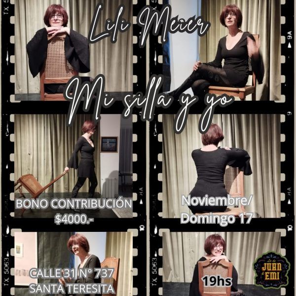 El próximo domingo, a partir de las 19.00 hs, el Espacio Cultural «Lo de Juan y Emi», (ubicado en calle 31 N° 737) de Santa Teresita, presentará el unipersonal de narración oral escénica titulado «Mi silla y yo», a cargo de Lili Meier.