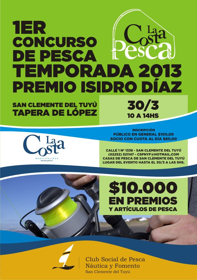 8. Los premios son hasta el décimo lugar: al 1° $5000,00 mil – al 2° $2000,00 mil – 3° al 5° $1000,00 mil – del 6° al 10° artículos de pesca.