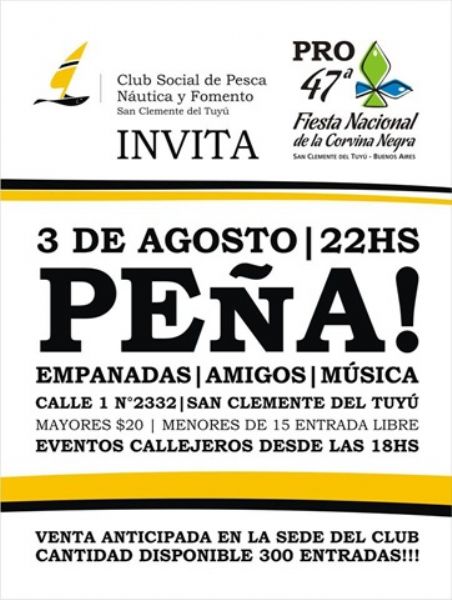 Sábado 3 de agosto en la sede Club Social de Pesca, Náutica y Fomento de San Clemente del Tuyú.