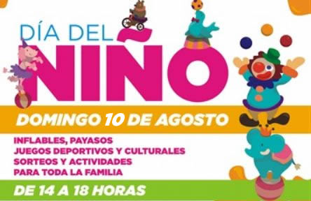 Desde las 14 y hasta las 18, los niños podrán disfrutar de inflables, shows de payasos, juegos deportivos, sorteos, y actividades culturales y de entretenimiento al aire libre y con acceso gratuito para toda la familia.