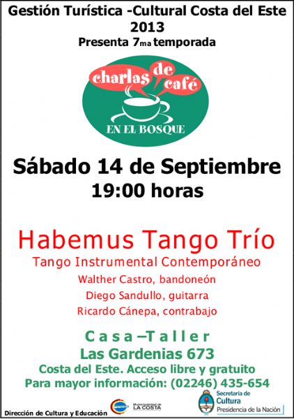 Habemus Tango Trio es una de las mejores novedades surgidas en el universo musical del Nuevo Tango de la actualidad. La propuesta musical de este trío: desarrolla un renovado concepto compositivo y de arreglos en un claro estilo post-piazzolleano. Además sintetiza con estos tres instrumentos toda esta cosmogonía musical, incorporando al ritmo y fraseo característico del Tango, elementos de la música erudita y la improvisación, la Música de Buenos Aires hoy.