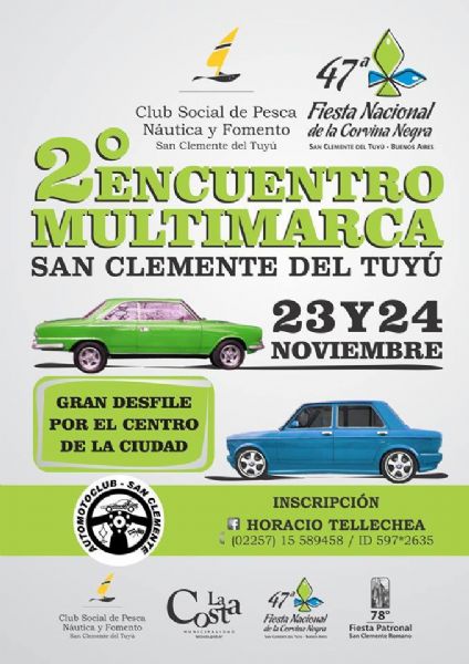 Los dias 23, 24 y 25 de noviembre se llevara a cabo el segundo encuentro multimarca de San Clemente del Tuyú participando del desfile por la 47a Fiesta Nacional de la Corvina Negra.