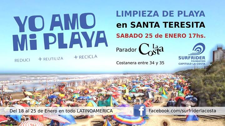 Surfrider Argentina , Yo amo mi playa - I love my beach y Surfrider La Costa te invitan el Sábado 25 de Enero a partir de las 17hs en el parador LA COSTA de costanera entre 34 y 35 Santa Teresita a la charla de concientización y limpieza de playa que vamos a realizar.