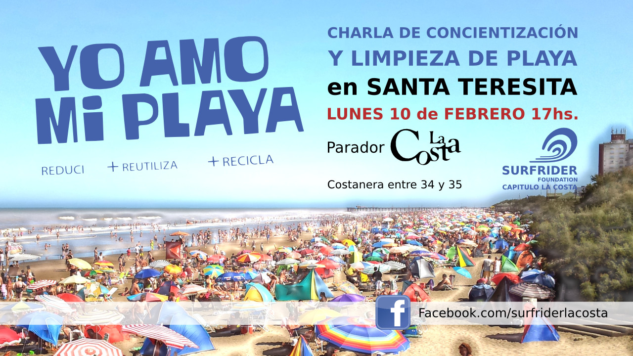 Surfrider Argentina , Yo amo mi playa - I love my beach y Surfrider La Costa te invitan el Lunes 10 de Febrero a partir de las 17hs en el parador LA COSTA de costanera entre 34 y 35 Santa Teresita a la charla de concientización y limpieza de playa que vamos a realizar.