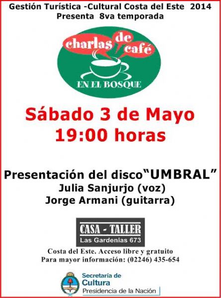 El dúo formado por los músicos, autores e intérpretes marplatenses Julia Sanjurjo (voz) y Jorge Armani (guitarra) harán standards de jazz y otras composiciones cercanas al género. En esta oportunidad estarán presentando el material de su disco “Umbral”.