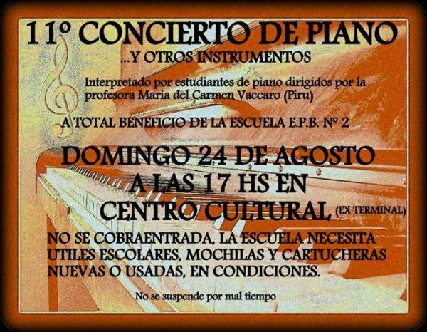 Los estudiantes de la escuela de piano de María del Carmen Vaccaro realizan un concierto solidario de piano y otros instrumentos a beneficio de la Escuela Serafín Dávila de San Clemente del Tuyú.