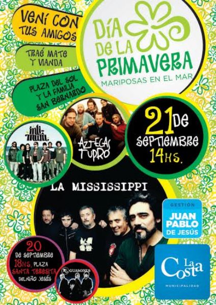 La Costa recibirá la primavera con una gran agenda de eventos y actividades que incluirá recitales gratuitos de La Mississippi y Guasones.