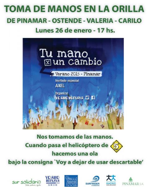 Toma de manos en la orilla de Pinamar, Ostende, Valeria y Cariló.lunes 26 de enero - 17 horas
