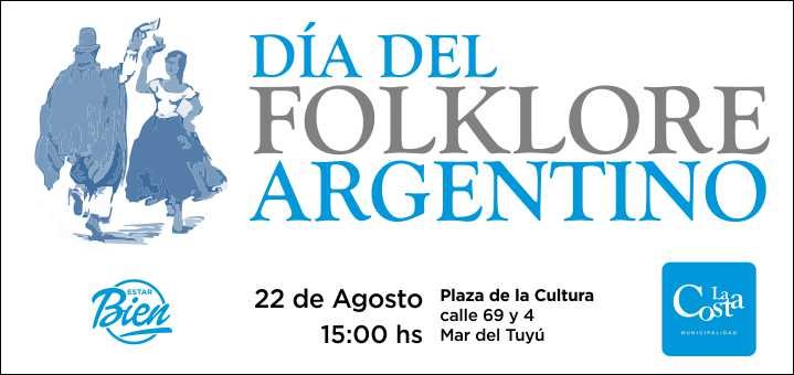El sábado 22 de agosto a partir de las 15 se festejará el Día del Folklore Argentino con una tarde a pura música y baile criollo en la Plaza de La Cultura, ubicada en la 69 y 4 de Mar del Tuyú.
