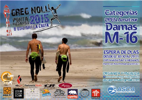 La Asociación Surfistas Costa Atlántica se enorgullece de presentar por octavo año consecutivo, una nueva edición del Torneo de Surf "Greg Noll" Punta Medanos 2015, que este año se extenderá con un PERIODO DE ESPERA de olas desde 30 de Octubre al 29 de Noviembre.