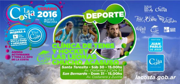 Destacadas figuras del deporte, como el ex tenista José “Chucho” Acasuso, la ex integrante de Las Leonas Inés Arrondo y la actual jugadora del seleccionado argentino de hockey sobre césped femenino Victoria Zuloaga, brindarán este fin de semana clínicas deportivas gratuitas abiertas a todo público en el Partido de La Costa.