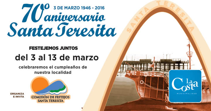 En el marco de los festejos por el 70º aniversario de la ciudad de Santa Teresita se llevará a cabo una serie de celebraciones desde el próximo jueves 3 y hasta el domingo 13 de marzo. En el amplio abanico de propuestas habrá distintos eventos deportivos, para todos los gustos.