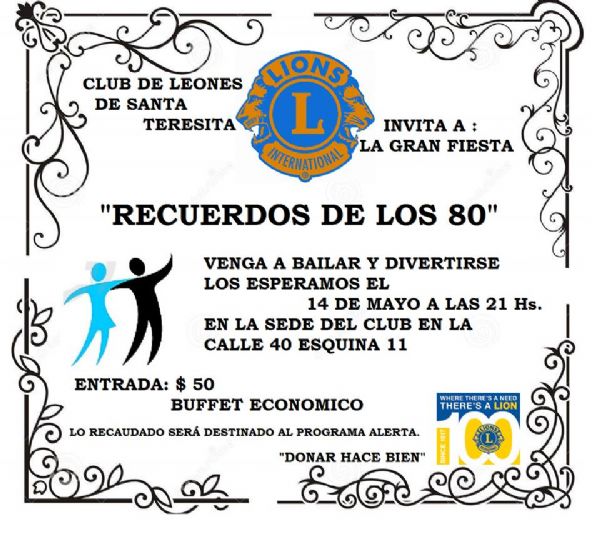 Club de Leones de Santa Teresita invita a la Gran Fiesta "Recuerdos de los 80"