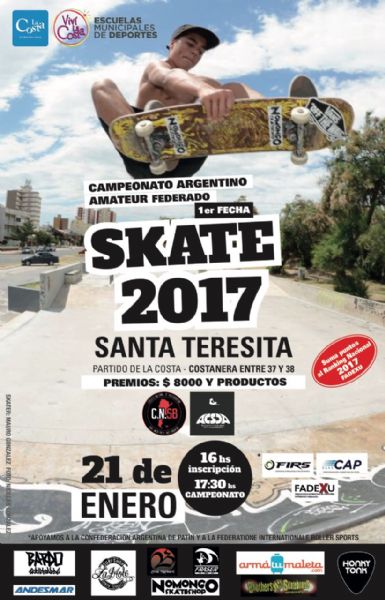 Deportistas nucleados en la nueva Asociación Civil de Skate de la Costa Atlántica (ACSCA) desembarcarán en Santa Teresita con un torneo que reunirá a referentes nacionales y a las nuevas promesas del denominado circuito amateur argentino. El Torneo Amateur Federado Argentino será fiscalizado por la Federación Argentina de Deportes Extremos y Urbanos (FADEXU).