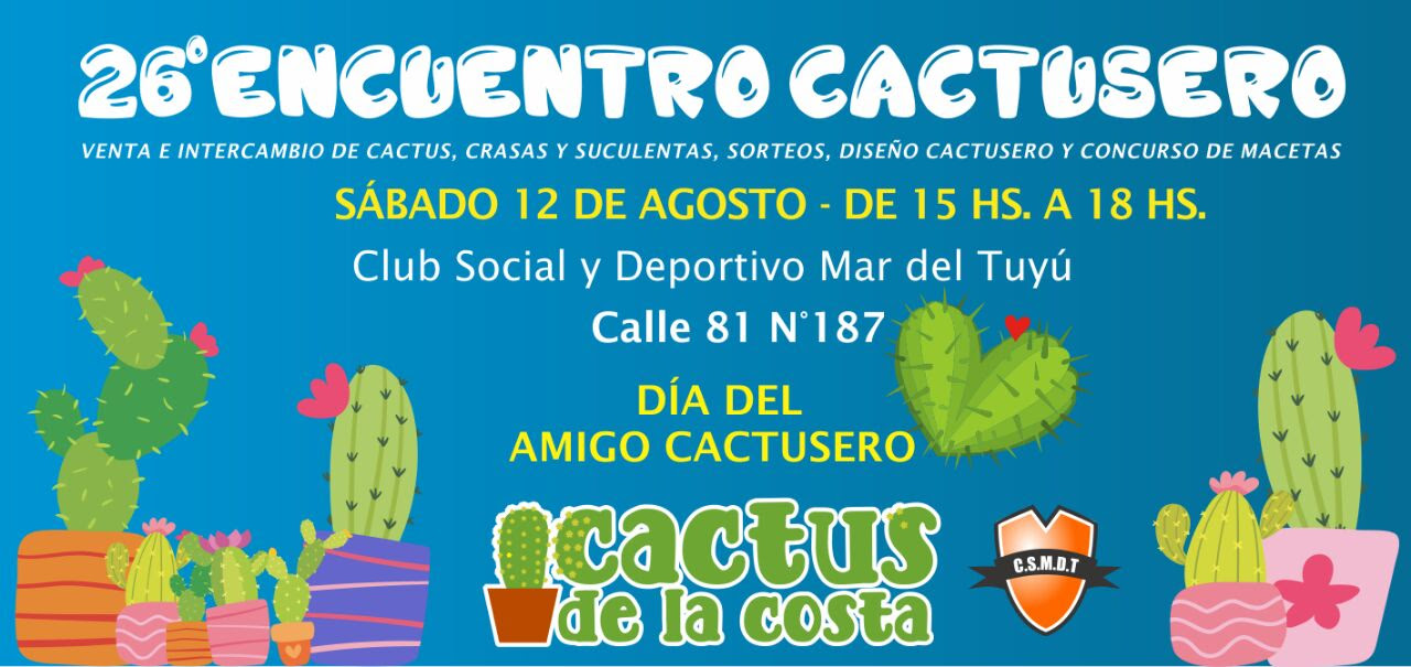 La edición N° 26 de los Encuentros Cactuseros ya tiene fecha y lugar: será el próximo sábado 12 de agosto, de 15.00 a 18.00 en el Club Social y Deportivo Mar del Tuyú, ubicado en calle 81 N° 187. El evento, de entrada libre y gratuita, ofrecerá un paseo familiar con venta, exposición e intercambio de cactus y suculentas.