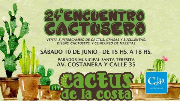 La edición N° 24 de los Encuentros Cactuseros se realizará este sábado 10 de 15.00 a 18.00 en el Parador Municipal de Santa Teresita, ubicado en la Avenida Costanera y 35. El evento, de entrada libre y gratuita, ofrecerá un paseo familiar con exposición e intercambio de cactus y suculentas.