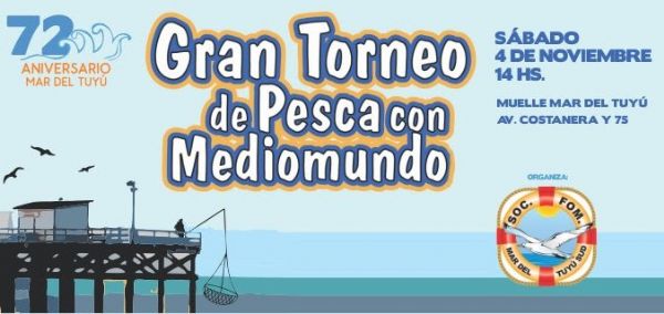 En adhesión a la celebración por el 72° aniversario de Mar del Tuyú y a la Fiesta de la Náutica y el Mar, la Sociedad de Fomento Sur de la localidad cabecera del Partido de La Costa, organizó para este sábado 4 de noviembre, a partir de las 14.00, un torneo de pesca con mediomundo.