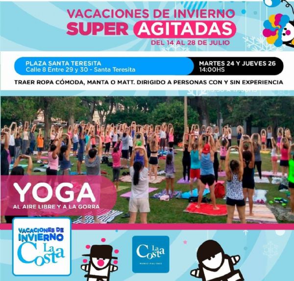 Como parte de las propuestas para disfrutar del aire libre en estas vacaciones de invierno en La Costa, se brindarán este martes y jueves clases abiertas de yoga en la Plaza Santa Teresita del Niño Jesús, ubicada en la calle 8 entre 29 y 30 de Santa Teresita.