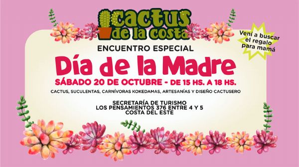 Mañana sábado tendrá lugar en Costa del Este un encuentro cactusero especial por el Día de la Madre. La feria temática abrirá sus puertas de 15.00 a 18.00 en la sede de la Secretaría de Turismo, ubicada en calle Los Pensamientos 376 entre 4 y 5.
