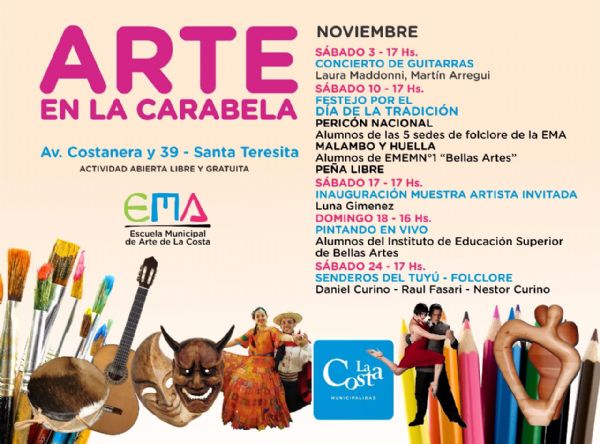 Como cada nuevo mes, el ciclo Arte en la Carabela que lleva adelante la Municipalidad de La Costa, renueva sus actividades culturales para ofrecer una propuesta completa para disfrutar en familia de manera libre y gratuita.