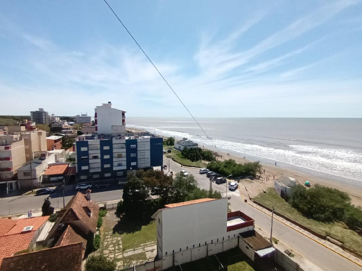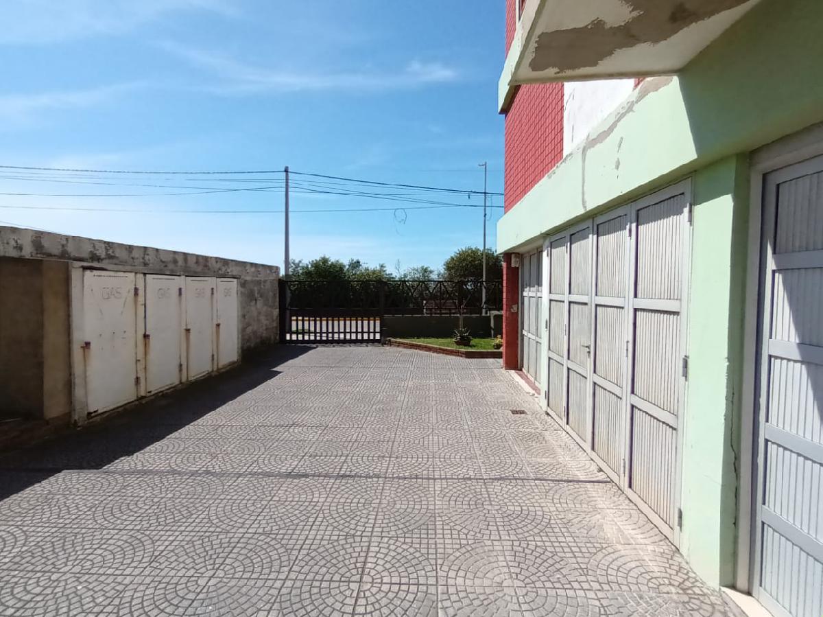 El edificio cuenta con cocheras individuales cubiertas en planta baja. El espacio exterior ajardinado se ubica en la entrada, delimitado por rejas y con canteros distribuidos. Las áreas comunes y accesos presentan pisos cerámicos y buen estado de conservación. Entre las vistas desde el departamento y el balcón, se destaca la proximidad a la playa y el entorno urbanizado de la zona costera.