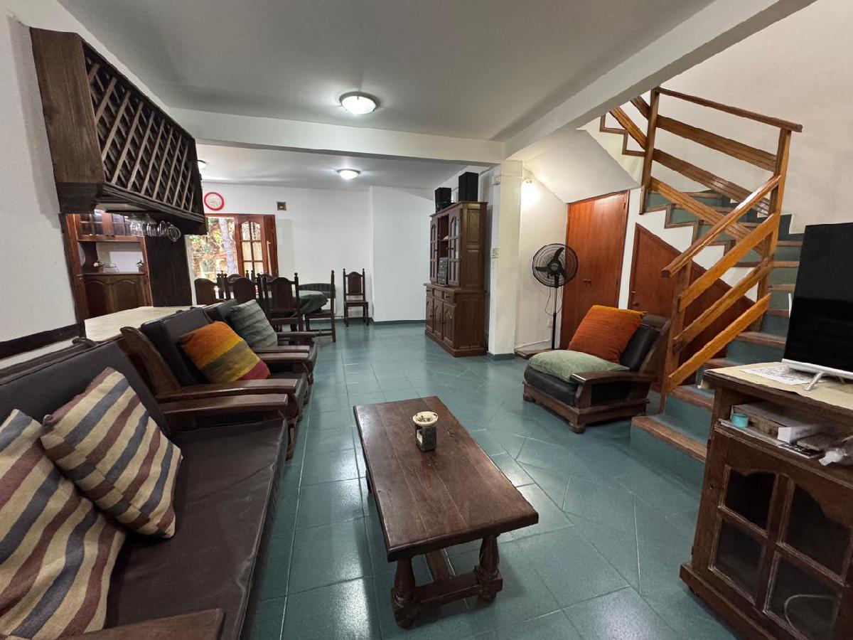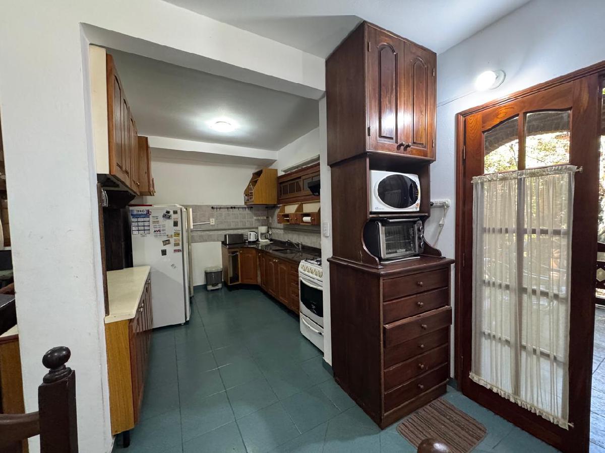 - Planta baja: Amplio living con hogar a leña y a su lado, comedor diario. Cocina independiente con barra de desayuno. Un dormitorio p/ niños con placar empotrado. Un baño completo.