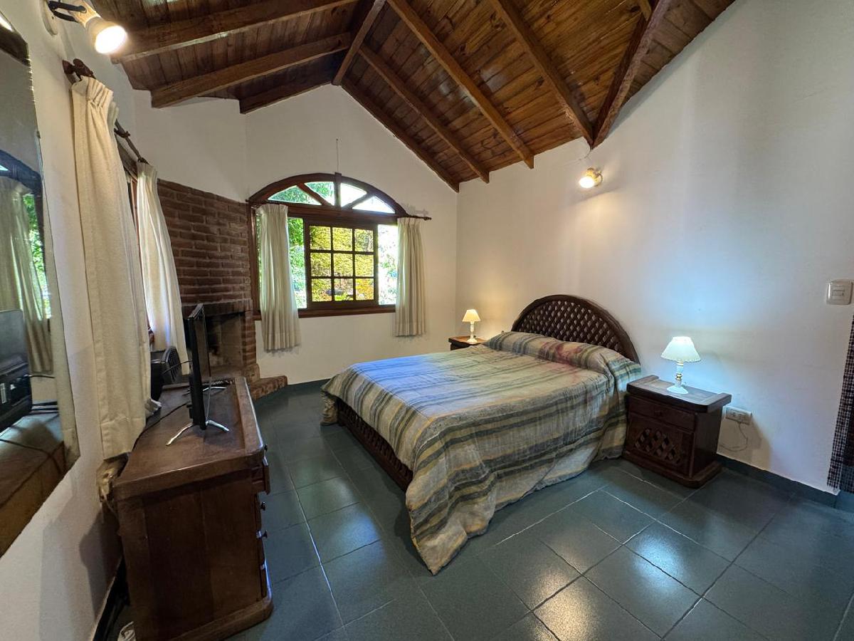 - Primer piso: Dormitorio principal en suite con hogar a leña, el mismo cuenta con placar empotrado y baulera. Dos dormitorios p/ niños, cada uno con placar empotrado. Un baño completo con ante-baño.