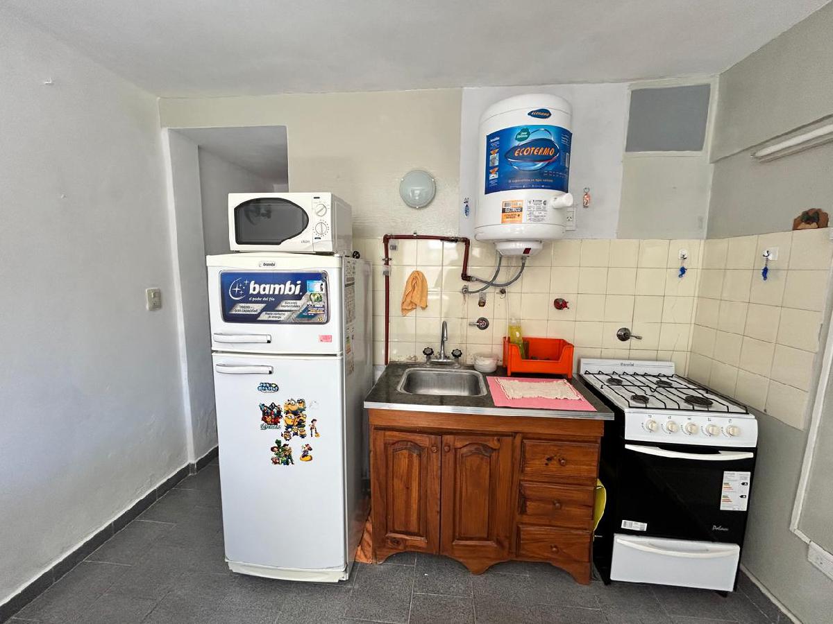Baño completo, sanitarios blancos. Agua caliente en cocina y baño a través de termotanque eléctrico, que se encuentra en la cocina.